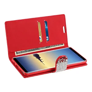 Enhance your style while keeping your Samsung Galaxy Note 8 safe with the Reiko Red Rhinestone Wallet Case. This stylish case not only protects your phone but also provides convenient storage for your cards and cash. Its dazzling diamond rhinestones add a touch of glamour, making it a perfect accessory for any occasion.