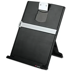 <div><b>General Information</b><hr/><span>Manufacturer</span>:3M<br/><span>Manufacturer Part Number</span>:DH340MB<br/><span>Manufacturer Website Address</span>:http://www.3m.com<br/><span>Brand Name</span>:3M<br/><span>Product Name</span>:Desktop Document Holder<br/><span>Marketing Information</span>:<p>Document holder features a sturdy, stable design with nonskid bottom that stays secure on worksurfaces. Versatile sliding clip accommodates both portrait and landscape documents. Grooved ledge and clip hold up to 150 sheets of paper and oversized documents. Adjustable line guide allows for easy data entry and keeps papers from blowing away. Fold document holder flat for easy storage.</p><br/><span>Packaged Quantity</span>:1<br/><span>Product Type</span>:Copy Holder<br/></div><div><b>Technical Information</b><hr/><span>Lock</span>:No<br/><span>Stackable</span>:No<br/></div><div><b>Physical Characteristics</b><hr/><span>Color</span>:<ul><li>Black</li><li>Silver</li></ul><br/><span>Height</span>:12.1"<br/><span>Width</span>:9.7"<br/><span>Depth</span>:2"<br/><span>Weight (Approximate)</span>:1.20 lb<br/></div><div><b>Miscellaneous</b><hr/><span>Additional Information</span>:<p>Sheet Capacity: 150 Sheets</p><br/><span>Recycled</span>:No<br/><span>Assembly Required</span>:No<br/><span>Country of Origin</span>:Taiwan<br/></div>