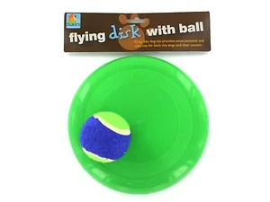 Engage your furry friends with our Interactive Flying Disk and Tennis Ball Set! These toss and fetch toys are designed for hours of fun, making them perfect for both dogs and their owners. The set includes a vibrant flying disk and a tennis-style ball, both conveniently packaged in a poly bag with a header card. The disk measures 8 inches in diameter while the ball measures 2.25 inches, ensuring the right size for energetic play.
