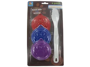 Dukes DI035 Pet Food Storage Lids and Serving Spoon Set - 4 Pieces