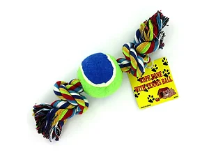 Dukes DI139 Colorful Rope Bone Toy with Tennis Ball for Dogs