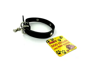This sturdy faux leather dog collar is designed for durability, making it perfect for all your furry friends. The collar features a delightful bone-shaped charm on the buckle and elegant stud accents. It is available in a convenient loose package with a hang tag. The collar measures 14 1/4 inches, providing a comfortable fit for your pet.