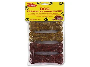 Our durable pressed rawhide chew bones are designed to last three to five times longer than regular rawhide due to their superior density. These bones contain no bleach and are an excellent choice for helping to clean your dog's teeth while they chew.