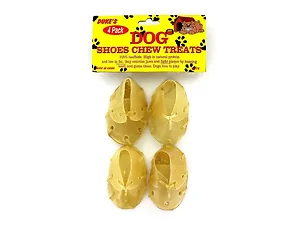 Each pack contains 4 shoes, perfectly sized at 2 3/4" to satisfy your dog's natural chewing instinct. Packaged in a convenient poly bag with a header card, these treats are an excellent choice for any dog owner looking for a tasty and health-conscious reward.