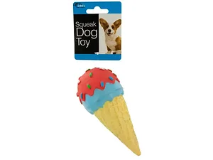 Fun toss and tug toy made of durable plastic with realistic details that dogs loveSweet design features a squeaky, colored ice cream cone with raised texture and painted detailsPackaged with a hang tagMade from plasticWhite, yellow, Green, blue, red and pink color5.5 in. L x 2.75 in. W (0.2083 lbs.)