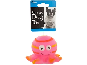 Provide hours of fun for your best friend with this Octopus Squeak Dog Toy featuring a cute animal toy made of durable plastic that satisfies a dog's natural urge to chew and is great for fetching, tossing and tugging. Fun design features a squeaky octopus with texture bumps on its legs and painted details. Measures approximately 4.25" x 3". Comes in assorted colors: blue and pink. Comes packaged with a hang tag.