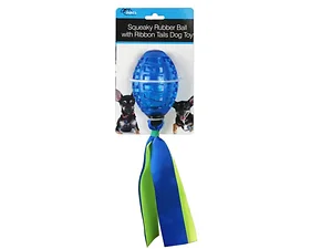 Bulk Buys DI622 Colorful Squeaky Rubber Ball Dog Toy with Ribbons