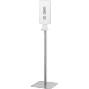 Dispenser Floor Stand provides flexibility in placing Dial FIT Touch-Free Hand Sanitizer Dispensers in high-traffic areas. That means you can heighten hygiene by making hand sanitizer to more people. Freestanding metal stand features an integrated drip tray for less mess on your floor. Rubber feet on the bottom protect your floors. FIT dispenser is sold separately and simple to install.