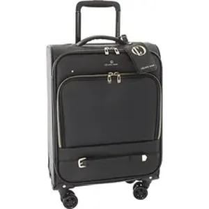 Lightweight, functional and incredibly stylish, this carry-on luggage case is the perfect companion for your next journey. Double-zipper main compartment opens completely to easily pack up and access your belongings. Self-locking, retractable handle and double spinner wheels help you travel effortlessly with heavy loads. Front zipper pocket offers convenient storage space for your frequently used items. Plus, its fashionable logo, light gold hardware, and trendy belt create a chic, upscale look to coordinate with your professional lifestyle.
