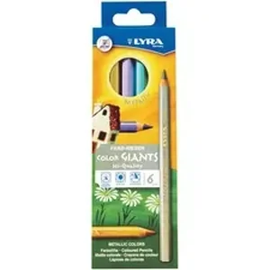 Lyra Color Giant Pencils with a hexagonal shape are easy for small hands to use and grip. The chunky, nontoxic pencils contain a 6.25mm diameter lead that is break-resistant to withstand rugged use from young learners. Durable lead yields extra-strong colors because the extra-thick formula is highly pigmented. Colors lay down smooth and creamy for impressive results. Set includes six assorted metallic colors.