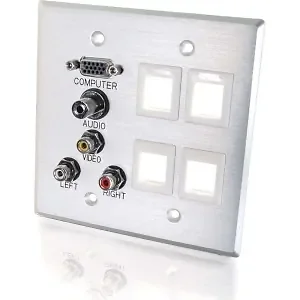 C2g 40509 DOUBLE GANG HD15 VGA + 3.5MM + COMPOSITE VIDEO + STEREO AUDIO + KEYSTONE WALL PL