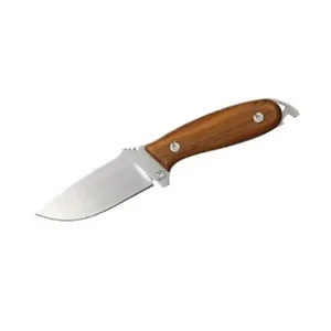 The LionSTEEL DPX HEFT 4 Woodsman is a robust fixed blade knife designed for outdoor enthusiasts and survivalists alike. With its premium materials and exceptional craftsmanship, this knife is not only functional but also a beautiful piece of equipment. The hand-finished Brazilian Santos wood handle provides a comfortable grip, while the stone-washed German Lohmann Niolox blade ensures durability and excellent performance in the field.