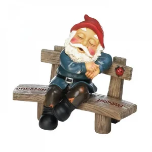 Add a whimsical touch to your garden with our Dreaming and Wishing Garden Gnome Statue. Made from durable polyresin, this charming piece features a sleepy gnome resting on a bench, perfect for making your landscape feel enchanting. Showcasing the words 'dreaming and wishing', it inspires both relaxation and aspirations. You’ll also find a delightful ladybug adding a hint of nature’s charm!