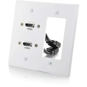 C2g 39708 Dual HDMI Pass Through Double Gang Wall Plate with One Decorative Cutout-White