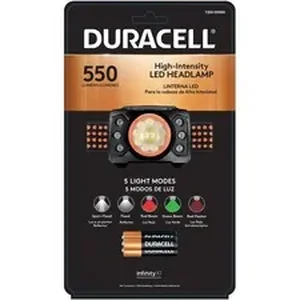 High Intensity LED Headlamp is made for adventure. Five modes include high spot/flood, flood, night vision red, night vision green and red strobe. With 550 lumens of light, the headlamp will shine up to 2 hours with a beam distance of 60 meters. It is resistant to water splashes from any direction with a waterproof rating of IXP4 and can survive a drop over 1 meter. Powered by three AAA batteries (included), this headlamp with comfort strap offers the right amount of light exactly where you need it.