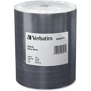 Verbatim 97017 DVD-R 4.7GB 16X DataLifePlus Shiny Silver Silk Screen Printable - 100pk Tape Wrap - 120mm - Printable - S