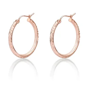 Alkeme E102R Elegant 14K Rose Gold Diamond Cut Hoop Earrings - 1 Inch
