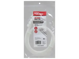 Introducing our Heavy Duty 24" Cable Ties, designed to tackle all your bundling needs with exceptional strength and reliability. Perfect for a variety of applications including plumbing, electrical wiring, gardening, crafts, and organizing. Each tie can hold up to 180 pounds and is capable of bundling items with a diameter ranging from 1/2" to 6 7/8". Each pack comes with five 24" cable ties neatly packaged in a resealable hanging bag.