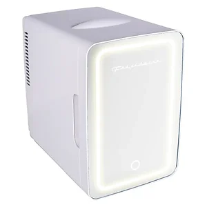• 52 watts AC power; 40 watts DC power;• For use in personal spaces, bedrooms, offices, hotels, boats, carpools, soccer games, sporting events, backyard BBQ, pool parties, and more;• 0.35 cu. ft., 10 L capacity chills up to 15 cans; removable shelf to store small items such as makeup, skin care products, yogurt, fruit, milk, baby bottles, soup, etc.;• Lighted mirror, cosmetic-door design for applying makeup;• Engineered with thermoelectric technology and uses advanced semiconductors that are free of CFCs and refrigerants, making it better for the environment;• Cools up to 20deg F below ambient room temperature;• Fully insulated with easy-to-clean interior;• Portable, plugs into either home outlet or car's 12-volt outlet ;• Nonscratch feet;• Includes carrying handle, AC power cord and 12-volt DC car adapter;• White;