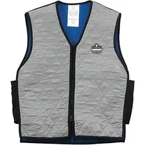 The Chill-Its 6665 Evaporative Cooling Vest is made with an advanced polymer-embedded fabric to provide workers with immediate core cooling relief from the heat. It is made of comfortable and durable quilted nylon exterior with mesh side panels for ventilation and stretch. For best results, wear this lightweight, body cooling vest over a T-shirt. Water-repellant liner keeps the interior of the vest as dry as possible when activated though you should expect to feel some dampness/wetness. This simple, effective and comfortable solution for heat stress prevention is similar to how sweat cools the body. When activated, this cooling safety vest is comfortable and refreshing for even the hottest days of the year. Size extra-large fits chest from 42" to 45".