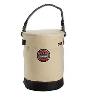 Arsenal 5730T Leather Bottom Bucket with top features a high wall and heavy-duty construction for strength and durability. Patented safety top is included for safer working conditions. Molded, plastic top ring maintains a wide opening for viewing and accessing contents. Interior pocket offers extra storage. Hoist bucket is made with 20 oz. canvas, leather-reinforced base and heavy-gauge, nylon stitching. Rope handle is made of polypropylene for reliable lifting and is resistant to rot, mold, mildew and moisture. Maximum safe working capacity is 150 lb.