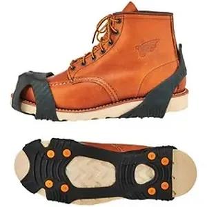 Trex 6300TC Slip-On Ice Cleats are lightweight ice grips for boots to prevent slip-and-fall injuries on the ice. With extremely durable studs, these ice cleats provide tenacious traction and extra stability on ice and snow. Tungsten carbide studs are stronger and thinner for better penetration and stronger grip. This very hard compound rates 9 on the Mohs scale for hardness, second only to a diamond. Enjoy full-foot traction from eight rugged studs that line the length of the foot with a thicker, under-sole tread and a reinforced toe cap for more durable wear and better grip. Stretchable rubber with textured interior hugs the toe and heel of your shoe or boot. Large thumb tabs on the heels allow easy on and off. One-piece, reliable cleats are flexible in temperatures as low as negative 40 degrees Fahrenheit (negative 40 degrees Celsius) and won't break in cold temperatures. They are compact so cleats are easy to store. Medium size fits U.S. men's footwear from 5 to 8.