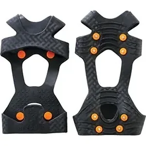 Trex 6300 Slip-On Ice Cleats are lightweight ice grips for boots to prevent slip-and-fall injuries on the ice. With eight replaceable spike grips, these ice cleats provide tenacious traction and extra stability on ice and snow. Stretchable rubber with textured interior hugs the toe and heel of your shoe or boot. Enjoy full-foot traction from rugged, heat-treated, carbon steel studs that line the length of the foot with a thicker, under-sole tread and a reinforced toe cap for more durable wear and better grip. Large thumb tabs on the heels allow easy on and off. One-piece, reliable cleats are flexible in temperatures as low as negative 40 degrees Fahrenheit (negative 40 degrees Celsius) and won't break in cold temperatures. They are lightweight and compact so cleats are easy to store. The 2XL size fits U.S. men's footwear from 15 to 18.
