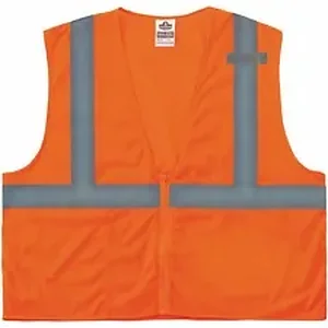 GloWear Type R Class 2 Super Econo Mesh Vest combines protection, job-specific performance, innovation and style. Polyester mesh in an eye-catching fluorescent color is highly visible and ANSI/ISEA 107, Type R Class 2 compliant with 2" reflective tape for low-light visibility. Machine-washable mesh fabric is lightweight, only weighing 3.3 oz. Use the zipper to securely close. Single interior pocket offers storage for essentials. Mic tab offers convenient radio access. GloWear 8210Z vest is great for road construction, utility crews, survey crews, construction, railway workers, baggage handlers, emergency response and warehousing/distribution. Large/Extra-large size fits chests from 44" to 52".
