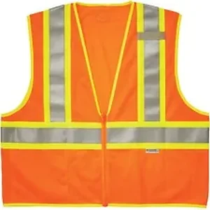 Made of ANSI-compliant, polyester mesh (3.3 oz), the 8230Z Hi-Vis Mesh Safety Vest provides Type R, Class 2-approved, low-light protection for workers. Its 2" ANSI-compliant reflective tape and fluorescent colors provide maximum visibility and protection against dangerous situations while working. Contrasting, fluorescent, 3-1/2" sections cross vertically and horizontally with reflective tape to further enhance visibility. Easily put on and take off safety vest with the zipper closure. Store and quickly find items and tools in the inside pocket. Safety vest securely holds a radio with the stable mic tab.