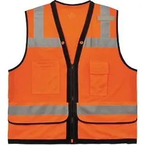 Made entirely of breathable, polyester mesh, the 8253HDZ Heavy-Duty Surveyors Vest provides high-visibility in poor light conditions. This vest features 2" 3M Scotchlite reflective tape for enhanced, low-light visibility. With two interior and four exterior pockets, this vest provides ample storage for pens, notebooks, tablets and more. Stow your phone in the vest's handy, designated phone pocket. Securely store important documents or a tablet in the zippered back pocket. Attach other work necessities to the lanyard grommet holes made with supportive, structured webbing. Mic tab provides convenient radio access. Zipper closure provides quick, on/off movements. It comes in dual sizing to accommodate different fits and bulky clothing. This reflective safety vest is ideal for anyone requiring Type R, Class 2 apparel, including road construction, baggage handling and municipalities.