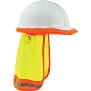 8005 Hi-Vis Neck Shades for Hard Hats protect neck and ears from sun damage. Lightweight, mesh material maximizes airflow and keeps workers cool in the heat. Fluorescent, polyester mesh enhances visibility in poor light conditions so workers can be seen. Trim meets ANSI 107 standard and provides an extra layer of safety by reflecting light. Neck shades fit most standard hard hats and safety helmets with full brims. Securely fit hats with brim clips to keep attachment in place while working. Machine-wash to quickly rewear.