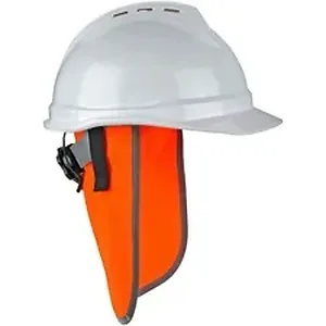 8006 Hi-Vis Neck Shades for Hard Hats protect back of neck and ears from sun damage. Fluorescent, polyester fabric enhances visibility in poor light conditions so workers can be seen. Trim lining meets ANSI 107 standard and provides an extra layer of safety by reflecting light. They fit most standard hard hats and safety helmets. Easily attach neck shades with four hook-and-loop closures that connect to the helmet's inside suspension. Material does not add bulk to hard hats so they are comfortable to wear for an entire work day. Machine-wash to quickly rewear.