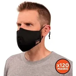 8800 Contoured Face Masks are intended to decrease the spread of COVID-19 by reducing dispersion of bodily fluids when talking, coughing or sneezing. Face masks are made of two layers for soft, breathable protection that meets CDC and WHO recommendations. Exterior is 100 percent cotton twill, and interior is 100 percent polyester mesh for breathability. Moisture-wicking mesh dries fast to maximize comfort. Internal mesh is treated with Microbial Z06 to kill odor-causing bacteria. Ergonomic design provides optimal coverage of nose, mouth and chin, minimizing particles that can otherwise get in or out. Formfitting material extends to provide full chin coverage. Nose clip adjusts to fit your nose and reduces fog when wearing eyewear. Elastic ear loops with adjustable sliders provide a comfortable, custom fit. Gap between mouth and mask creates space for easy, unrestricted talking and breathing. Machine-wash mask for easy cleaning.