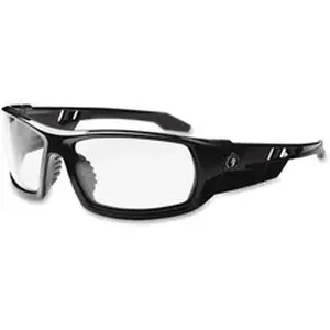 Skullerz Odin Safety Glasses feature a tough, scratch-resistant lens that filters 99.9 percent of harmful UVA, UVB and UVC rays to keep your eyes safe in the sun. They are military tested and ANSI Compliant. Clear Fog-off Lens is ideal for indoor use, low light and hazy/cloudy conditions. Permanent, anti-fog treatment delivers fog-free viewing at all times and will not wash or wear off. Great for use with dust masks, these lenses won't fog so you can focus on the job at hand. Durable, nylon frames bend and flex without breaking. Nonslip, rubber nose piece and rubber temples keep the full-frame glasses secure and resist sweat. Integrated accessory receptors at each temple also improve airflow when not in use. Frame width is 142mm.