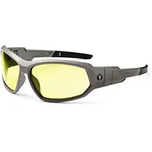 Skullerz Loki Safety Glasses are designed to be worn as regular sunglasses or as safety goggles by removing the temples and attaching the elastic strap and removable foam gasket for a dust-beating seal (both included). Tough, scratch-resistant lens filters 99.9 percent of harmful UVA, UVB and UVC rays to keep your eyes safe in the sun. Protective, work safety sunglasses are military tested and ANSI Compliant. Ideal for indoors, outdoors, low light and hazy/cloudy conditions, this yellow lens increases brightness in dull conditions. Durable, nylon frames bend and flex without breaking. Nonslip, rubber nose piece and rubber temples keep the glasses secure and resist sweat. Frame width is 144mm.