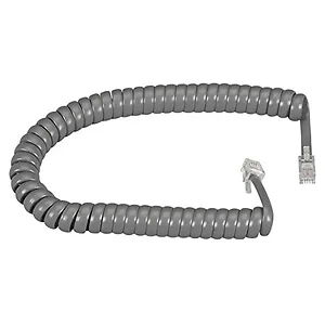 This 6-foot coiled handset cord in dark gray is designed for reliable connections in telephone systems. Ideal for use with a variety of handsets, it provides flexibility and durability in daily usage.