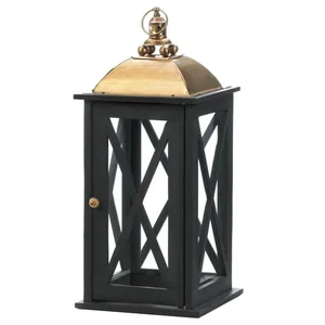 Nikki Chu 5001071 Elegant Black Wood Candle Lantern with Metal Top - 21"