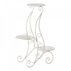 Add a touch of elegance to your home with this stunning 3-tier iron plant stand. Perfect for showcasing your favorite plants and flowers, this stand not only holds your plants but also enhances your decor with its beautiful curlicue design.
