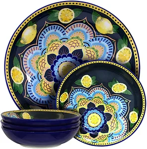 Elama ELM-NOEMI 5-Piece Blue Stoneware Pasta Bowl Set