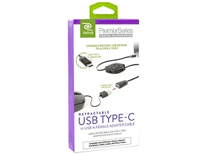 This cable is perfect for connecting standard USB-A devices to computers and phones that only feature USB-C ports. The sleek black extension cord is designed for easy portability and comes packaged in a convenient hanging box.