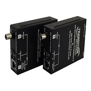 The Ethernet Over Coax Extender by Transition Networks offers high-speed connectivity solutions by converting Ethernet signals over coaxial cables. Designed for various network environments, it supports multiple Ethernet standards including GigE, 10Base-T, 100Base-TX, and 1000Base-T. This reliable media converter ensures that data can be transmitted efficiently over existing coax infrastructure, making it an ideal choice for upgrades or expansions of network infrastructure.