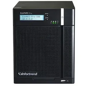 The Infortrend EonNAS Pro 500 is a robust 5-bay network-attached storage solution designed to provide reliable and high-performance data management for small to medium businesses. It features five 1TB hard disk drives, offering ample storage capacity. Powered by an Intel Atom D525 processor and 4GB of RAM, this NAS is optimized for data sharing, backup, and media streaming.