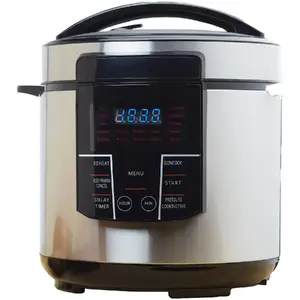 6-Quart Electric Pressure cooker for multi-functional cooking with Hi/Low Pressure, rice and slow cooking options allows you cook meals up to 70% faster than conventional methods. Safetly-lock lid, auto relief valve, One- touch cooking buttons. Black & Stainless Steel finish.