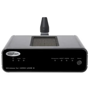 The Gefen Wireless HDMI Extender and Video Switcher offers an efficient solution for transmitting high-definition AV signals from multiple sources to a single display without the clutter of cables. It utilizes advanced Ultra-Wideband (UWB) technology to send high-quality video and audio up to 30 feet in line-of-sight conditions, supporting resolutions up to 1080p at 30 frames per second.