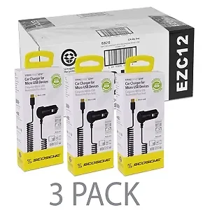 Package Includes- (3-Pack) 3 Scosche EZC12 12W Reversible Micro USB Car Charger