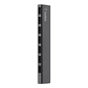 onnect a variety of USB compatible devices such as USB hard drives, smartphones, tablets, and more to your computer with the F4U041TT 7-Port Ultra-Slim Desktop Hub from Belkin. This plug-and-play device features seven USB 2.0 ports ports supporting a data transfer rate of up to 480 Mb/s. Additionally, broad compatibility with portable devices makes this USB hub both convenient and versatile.