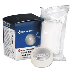 First aid tape and conforming gauze are part of the innovative SmartCompliance Program that redefines business first aid. SmartCompliance refills make it easy to identify what you need in your first aid cabinet so you are always prepared and have a full kit. This refill includes a 1/2" x 5 yards of First Aid Tape and 2" conforming gauze. The roll of flexible, soft gauze holds sterile dressings in place and won't cling to hair or skin. Soft and absorbent, the gauze can hold dressing on wounds yet provide flexibility for movement if needed. Each roll contains approximately 4 yards of conforming gauze and the 2" width helps cover wounds quickly.