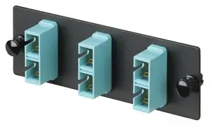 It features three SC duplex multimode ports, providing high-density connectivity while maintaining optimal performance. The aqua color coding helps differentiate multimode connections, ensuring clarity during installation and maintenance.