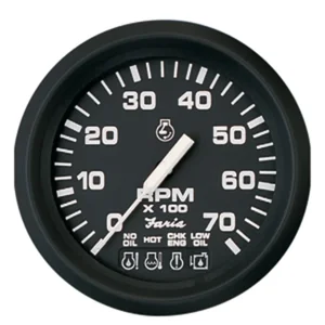 These tachometers have a warning light system built into the dial that show off warning indicators when a fault is detected from the engine.