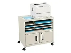 The Bretford FAX2 Office Machine Stand is a versatile solution designed to accommodate various office machines. With its sleek putty beige finish, this stand not only offers practicality but also complements any office decor. Ideal for laser printers, the stand features modular shelving and a secure locking cabinet for organized storage.